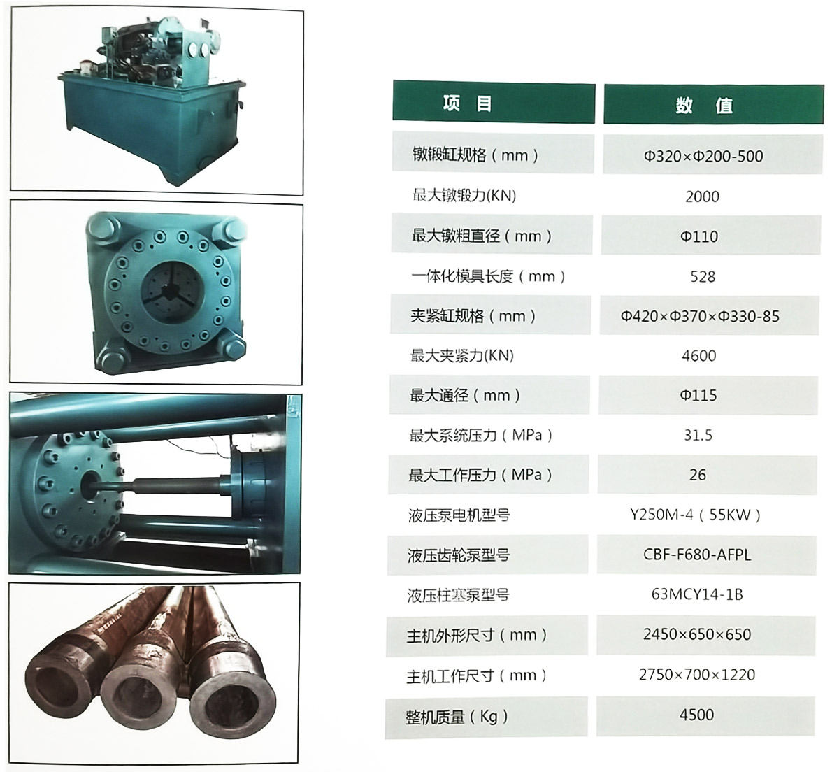 YDG200D型全液壓鐓管機是我公司于2017年研發(fā)的針對煤礦鉆桿、尺寸短、三棱等特點要求而研發(fā)的一款產(chǎn)品在YDG系列產(chǎn)品優(yōu)勢的基礎。上加以改良,有效解決了尺寸短、三棱等特點的鐓粗加工要求,有效的提高了鐓鍛效率和質(zhì)量,顯著地節(jié)省了加工成本。